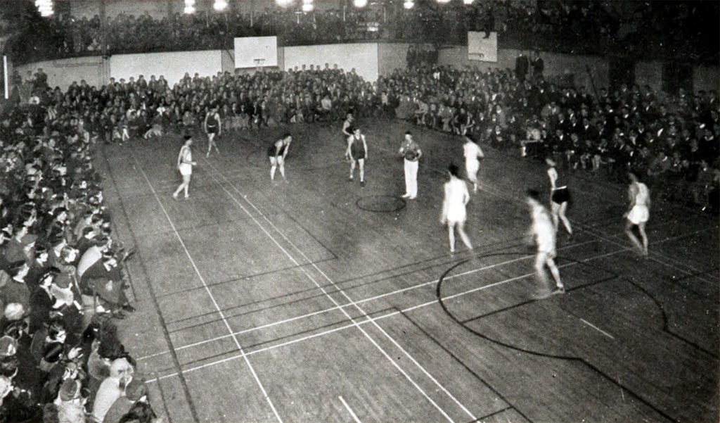 “With the Burnet Woods gym filled to capacity, the Bearcats and the Big Reds played to an audience which had come to see the Bearcats emerge victorious,” reads the 1929–30 edition of The Cincinnatian. “For to win this game meant first position in the Buckeye race. . . . The last few moments saw the Cincinnati fans in a frenzy as Miami led 33–31. However, the Bearcats managed to tie the score at 33 all, and then both teams tried frantically to work the ball into scoring position. During the final seconds of play, [Robert] White broke through the Big Reds’ defense and tossed the leather sphere through the hoop to win the game 35–33, thus bringing a most successful season to a fitting close.”