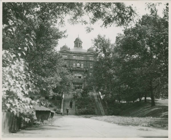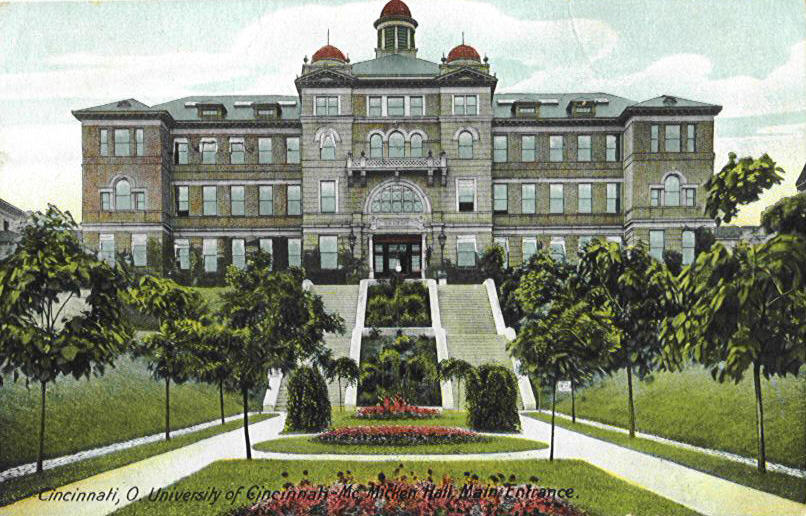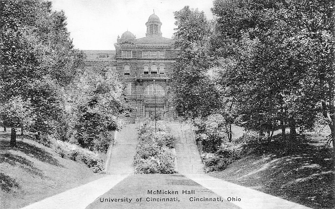 UC took over 43 acres of Burnet Woods for its new campus. At the time, the park stretched from Ludlow Avenue in the north (where it stops today) to Calhoun Street in the south. UC would take over the south end of the park, construct a much larger building to house the expanding curriculum and student body, and they’d name it after the university’s original benefactor.